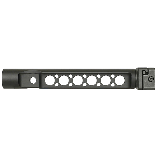 Heavy duty side folding mechanism constructed from 4140 steel – Full length locking lug for maximum strength. – Solid positive lock up in both positions. – Steel clamp with large surface engagement. – Can be configured to right or left folding. – Modular design can accommodate different stock attachments. – Features a Mil-Spec diameter aluminum stock tube that is hard coat anodized. – Stock tube features water proof storage compartment – Adds 7 inches to the length of the firearm in the open position. – Adds ¾ of an inch to the firearm in the folded position. – Complete assembly weight is 13oz. – Steel parts are mag phosphate finished – Made 100 percent in the USA.